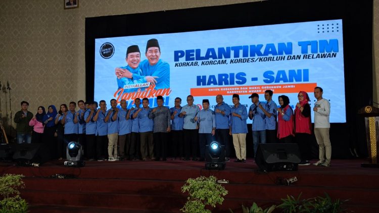 Pelantikan tim kabupaten, korcam, kordes, supik gendis, tim Milenial dan relawan Haris-Sani Kabupaten Muaro Jambi ini turut dihadiri sejumlah tokoh.
