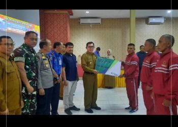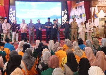 Visualjambi, Jambi. - Gubernur Jambi Dr. H. Al Haris, S.Sos., MH menyerahkan bantuan secara simbolis kepada penerima bantuan beasiswa Dumisake...
