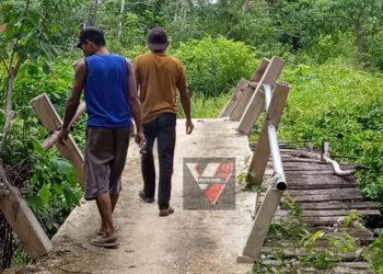VisualJambi, Sarolangun. - Pekerjaan proyek jembatan roda 2 penghubung lintas dusun 3 sebagai akses perkebunan petani warga desa Guruh Baru,...