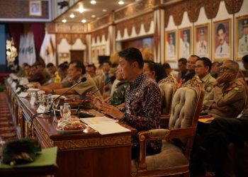 VisualJambi, MUARO JAMBI - Pejabat Bupati Kabupaten Muaro Jambi Bachyuni Deliansyah SH.MH menghadiri rapat Koordinasi penanganan darurat bencana banjir dan...