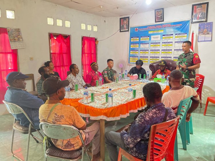 VisuaLJambi, Kabupaten Keerom – Wujudkan stabilitas keamanan Satgas Pamtas RI- PNG Yonif 122/TS bersama Keluarga Pegunungan Tengah (RKPT) Kabupaten Keerom melaksanakan kegiatan pertemuan dalam rangka menjalin hubungan silaturahmi yang dipimpin langsung oleh Simon Kossay Ketua RKPT dihadiri oleh kepala suku pegunungan Kabupaten Keerom, Minggu kemarin (19/05/2025).