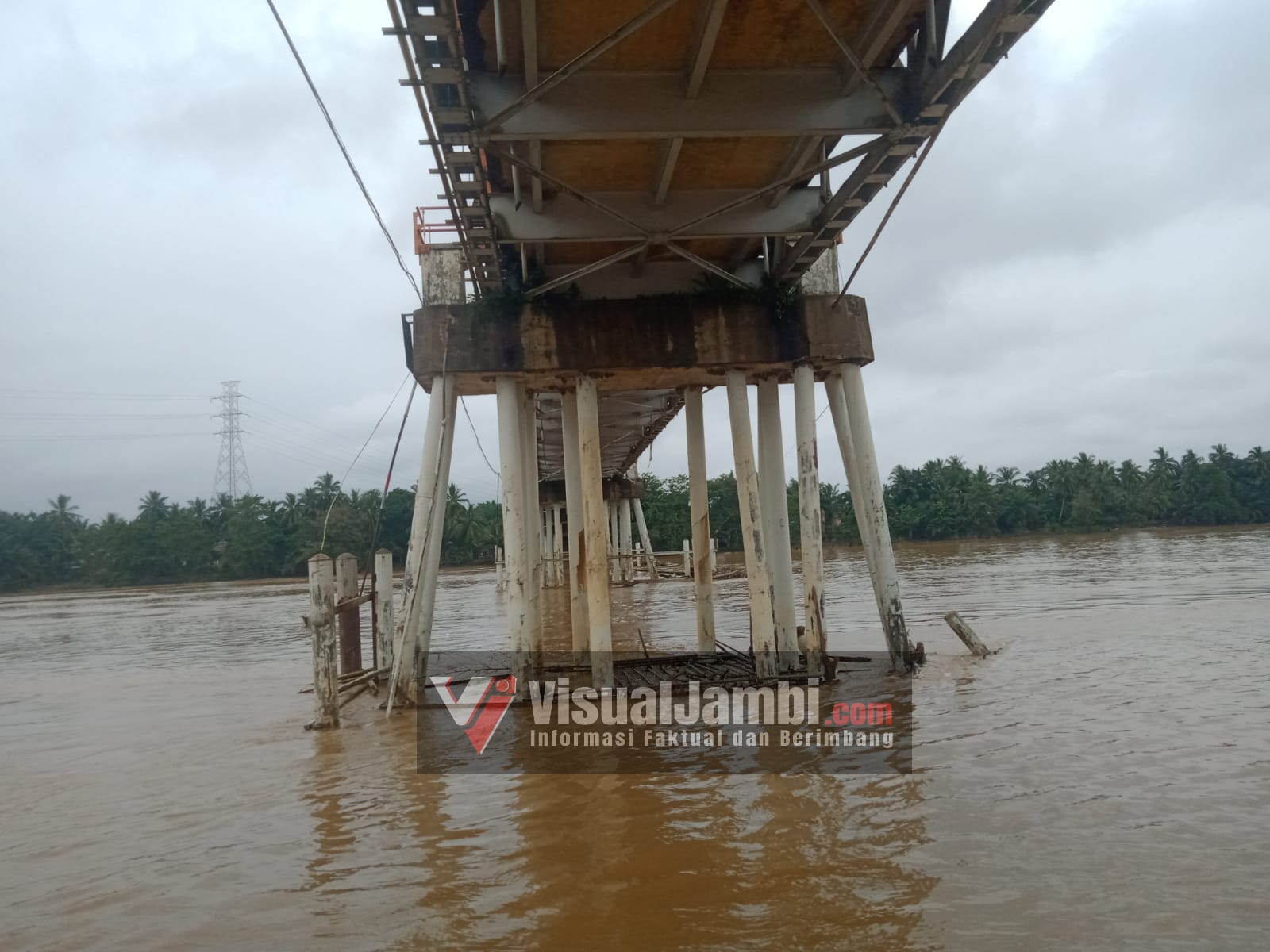 VisualJambi, Batanghari (tembesi). – Siapa yang harus bertanggung jawab, yang mana melihat kondisi jembatan muara tembesi sebagai akses utama untuk seluruh semua kendaraan pada Jalan Nasional ini akan menjadi Bom waktu bakal Ambruk.