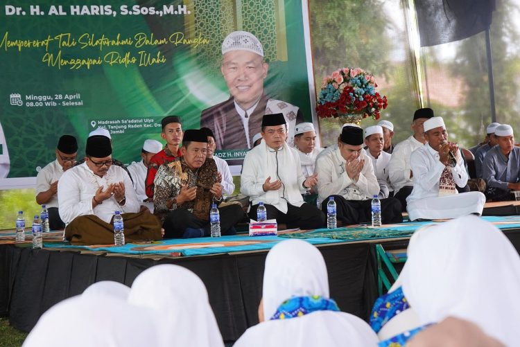 VisualJambi, Sekoja. – Gubernur Jambi Dr. H. Al Haris, S.Sos, MH, menyampaikan, Seberang Kota Jambi (Sekoja) sudah dikenal semenjak dulu adalah Kota Santri, karena seberang ini adalah pusatnya sekolah agama Islam, madrasah dan pondok pesantren tertua, banyak sekali santri-santri yang lahir dari Seberang Kota Jambi ini, sampai saat ini masih banyak melahirkan santri-santri yang memahami agama. Hal tersebut disampaikan Gubernur saat menghadiri Haul dan Halal Bihalal bersama masyarakat Tanjung Raden, bertempat di Madarasah Sa’adatul Ulya Kelurahan Tanjung Raden Kecamatan Danau Teluk Seberang Kota Jambi, Minggu (28/04/2024).