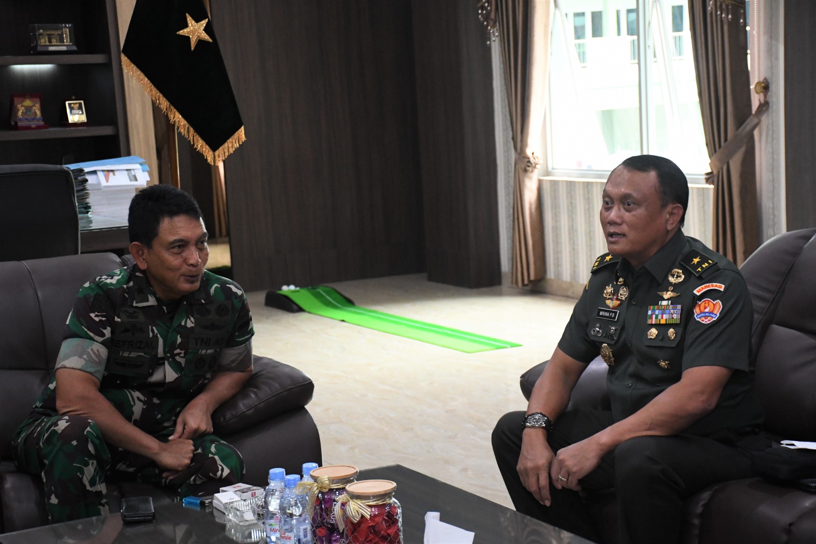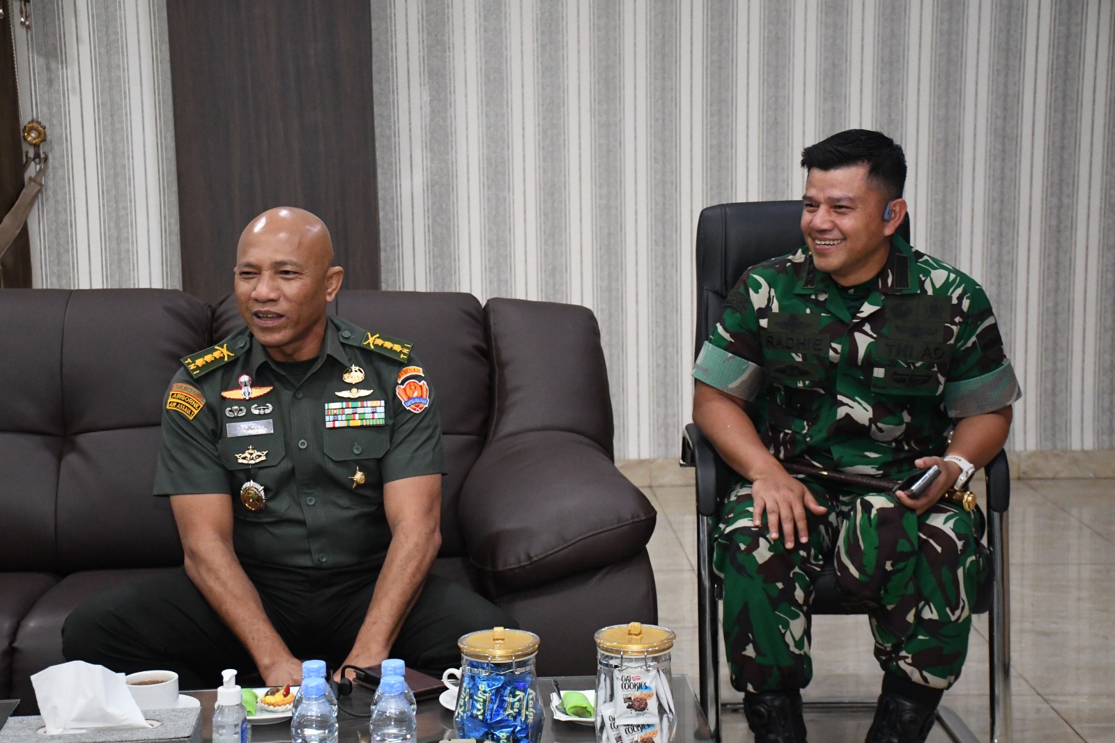VisualJambi, Medan – Kasdam I/BB Brigjen TNI Refrizal didampingi Kapoksahli Pangdam I/BB Brigjen TNI David Hatigoran Hutagaol, S.E, M.M, M.Han Menerima Audiensi Tim Pokja Sahli Kasad Bidang Komsos dipimpin Brigjen TNI Wirana Prasetya Budi, S.E. beserta rombongan dalam rangka Kunjungan Kerja Tim Puldata Penyusunan Kajian Strategis TW IV TA 2024 bertempat di Ruang Kerja Kasdam I/BB Makodam I/BB. Selasa kemarin (05/11/2024).