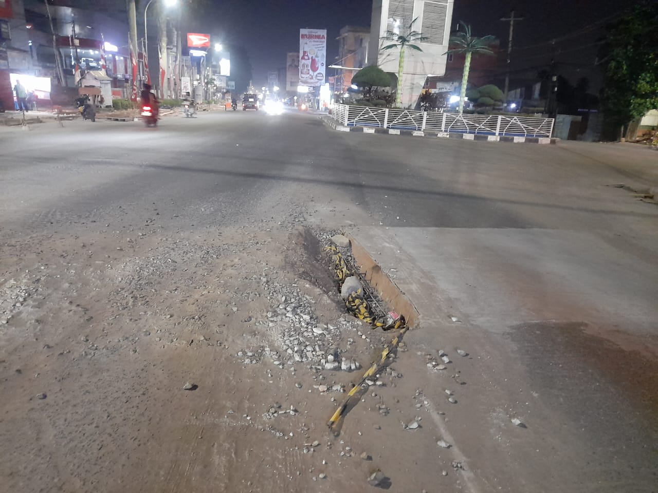 Pasalnya, nyaris saja ada insiden kecelakaan yang di alami awak media, saat melintas dengan kendaraan bermotor di lokasi keberadaan Lobang, pada dini hari ini, pukul 00.20 wib.