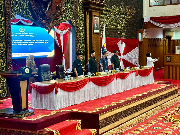 Pada kesempatan ini, hadir Wakil Gubernur Jambi, Abdullah Sani dan sejumlah pejabat dilingkup pemerintahan Provinsi Jambi. Pada kesempatan ini, Wakil Gubernur Jambi, Abdullah Sani membacakan Nota Pengantar Rancangan KUPA dan PPAS Perubahan APBD Provinsi Jambi Tahun Anggaran 2024.