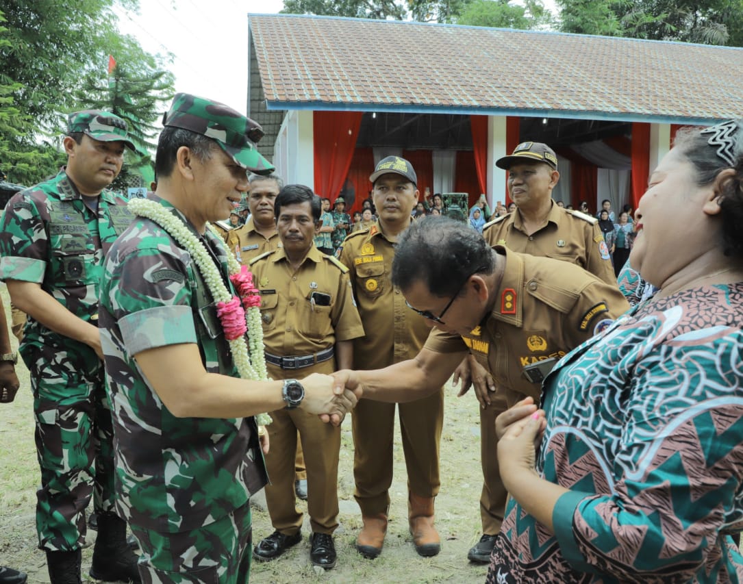 Di akhir acara, Pangdam bersama Pejabat Utama TNI-Polri dan unsur Forkopimda menyerahkan secara simbolis bantuan sosial kepada warga masyarakat sekitar Desa Rumah Deleng.
