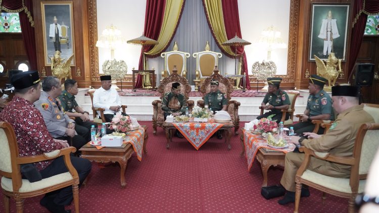 VisualJambi, Kutai Kartanegara. – Pangdam VI/Mlw Mayjen TNI Tri Budi Utomo dan Brigjen TNI Anggara Sitompul S.I.P., didampingi Dandim 0906/Kutai Kartanegara (Kkr) Letkol Czi Damai Adi Setiawan S.I.P., M.I.P, lakukan kunjungan silaturahmi ke Kesultanan Kutai Kartanegara Ing Martadipura yang berada di jalan Monumen Timur Kelurahan Panji Kecamatan Tenggarong Kabupaten Kukar, Senin (22/7/2024).