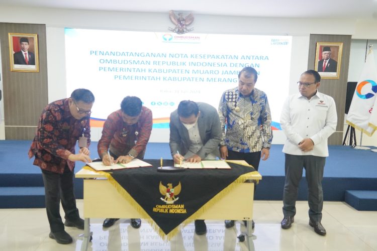 VisualJambi, Jakarta – Dalam rangka peningkatan kolaborasi dan juga pengawasan, Ombudsman Republik Indonesia menjalin kerja sama dengan Pemerintah Kabupaten Merangin dan Pemerintah Kabupaten Muaro Jambi dalam bentuk Nota Kesepakatan tentang Peningkatan Kualitas Pelayanan Publik dan Percepatan Penyelesaian Laporan Masyarakat.