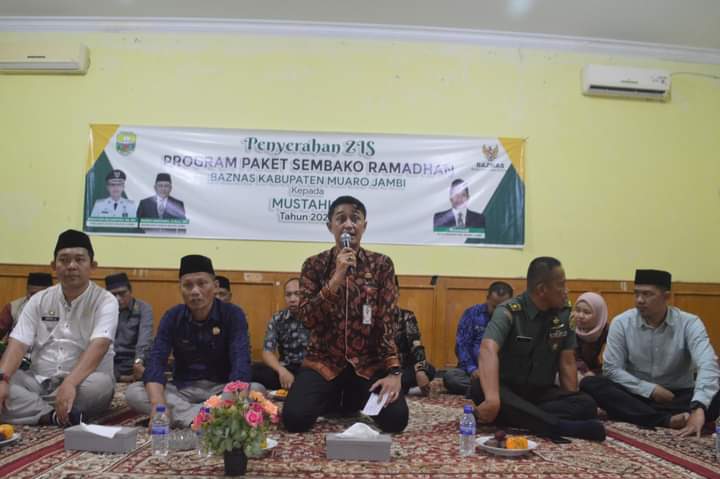 VisualJambi, MUARO JAMBI. – Penjabat Bupati kabupaten Muaro Jambi Bahcyuni Deliansyah SH MH menghadiri langsung dalam Acara penyerahan program paket Sembako Ramadhan BAZNAS kabupaten Muaro Jambi,yang bertempat di kantor Camad maro sebo, Jumat 8/03/2024