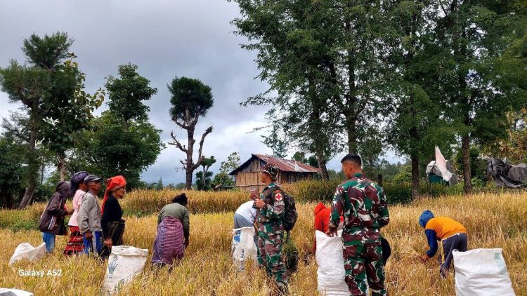 VisualJambi, TTU. – 7 Juni 2025, Bentuk kepedulian terhadap kesejahteraan masyarakat terus ditunjukkan oleh Satgas Pamtas RI–RDTL Sektor Barat. Personel Pos Haumeniana yang dipimpin oleh Kopda Moyusuf Ariadi bersama anggota, turun langsung ke sawah membantu warga memanen padi di Desa Haumeniana, Kecamatan Bikomi Nilulat, Kabupaten Timor Tengah Utara (TTU).