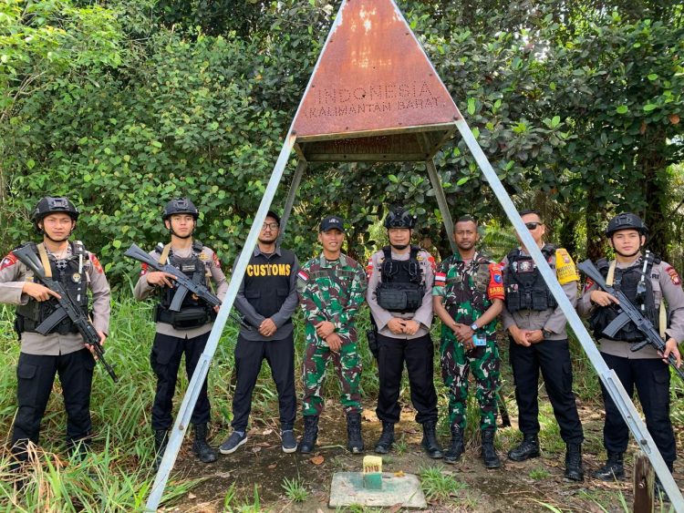 VisuaLJambi, Sambas – Satgas Pamtas RI-Malaysia Yonarmed 16/TK Pos Koki Sajingan Terpadu yang dipimpin oleh Serda Ade Wahyudin Beserta 2 orang anggota dan Babinsa Aruk melaksanakan kegiatan Patroli bersama Satbrimob Sajingan di Aruk perbatasan RI – Malaysia. (24/5/2024).