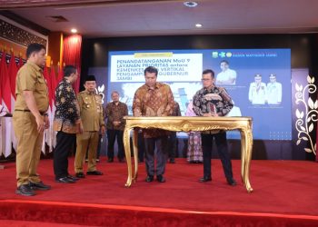 VisualJambi, Kota Jambi. - Gubernur Jambi Dr. H. Al Haris, S.Sos, MH menandatangani Memorandum of Understanding (MoU)/Nota Kesepahaman dengan Pimpinan ...