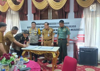 VisualJambi, Bangko. - Penjabat (Pj) Bupati Merangin H Mukti menandatangani Naskah Perjanjian Hibah Daerah (NPHD), untuk pendanaan kegiatan Pemilukada tahun ...
