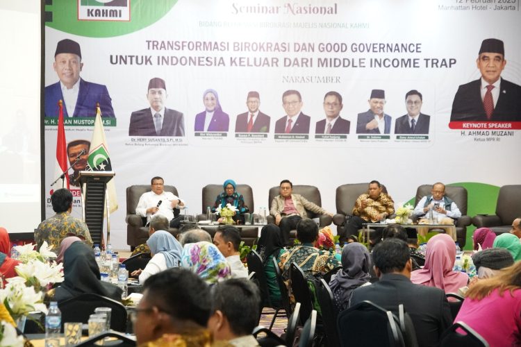 VisualJambi, Jakarta – Seminar Nasional yang diselenggarakan Majelis Nasional Korps Alumni Himpunan Mahasiswa Islam (MN KAHMI) di Manhattan Hotel, Jakarta, pada Rabu (12/2), menghadirkan berbagai pemangku kepentingan guna membahas strategi Indonesia keluar dari Middle Income Trap (MIT). Acara ini dihadiri oleh narasumber dari Kementerian PANRB, Kementerian Investasi/BKPM, Kementerian ESDM, dan pelaku usaha. Dalam diskusi ini, terungkap bahwa stagnasi ekonomi akibat MIT dapat diatasi melalui reformasi birokrasi dan penerapan tata kelola pemerintahan yang baik (good governance).