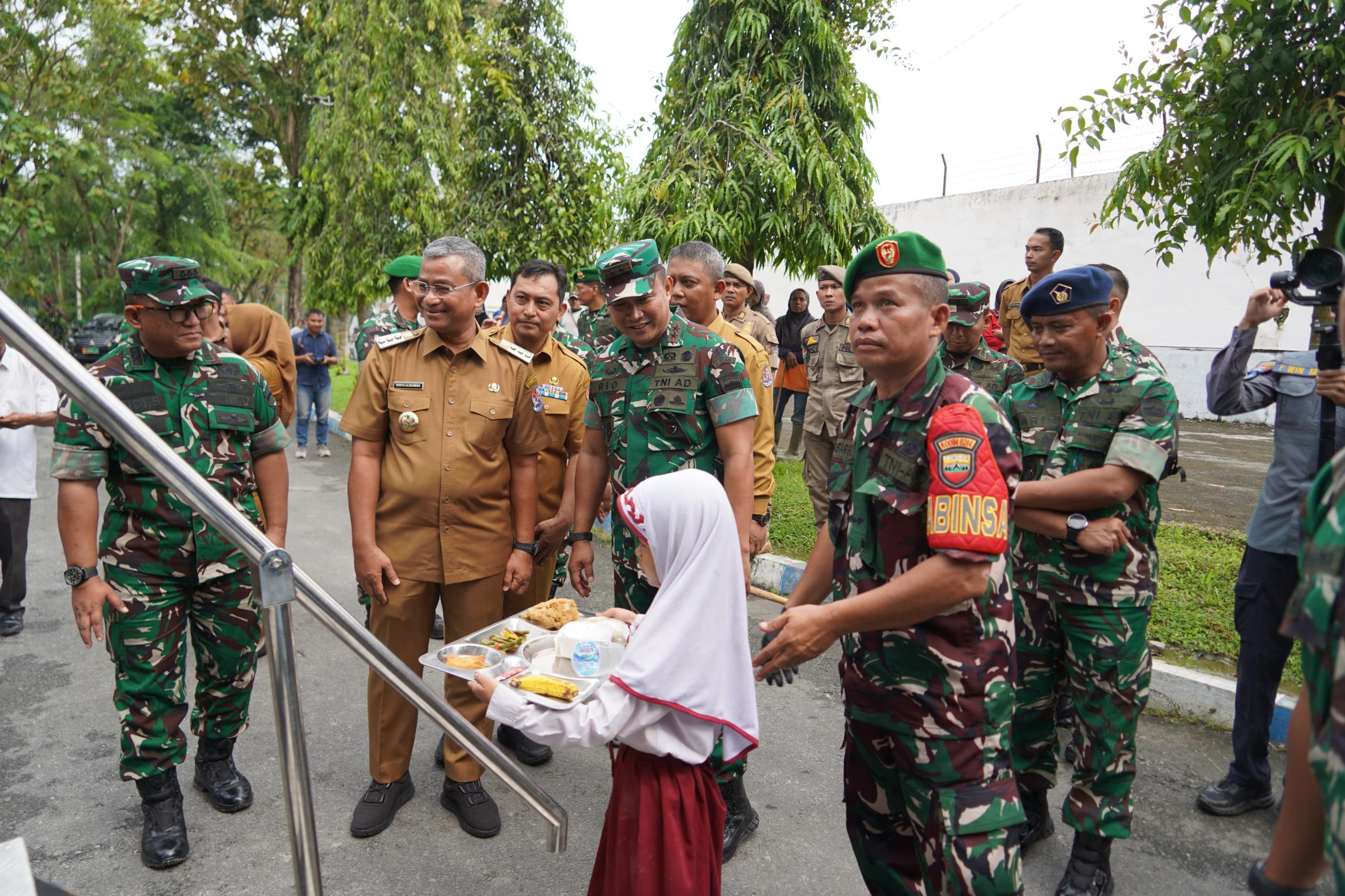 Uji Coba Makan Sehat Bergizi, Pangdam I/BB Tanya Siswa SD : Enak Gak Makanannya ?