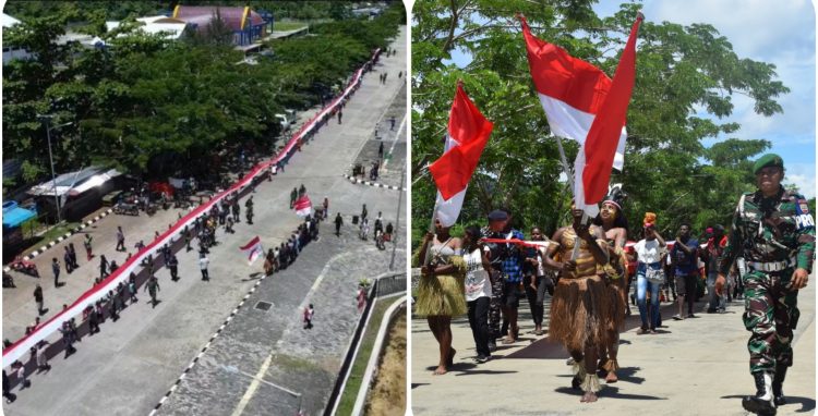 Wujudkan Papua, Damai, Tentram, Dan Cinta tanah air, Satgas Yonif 122/TS Gelar Pengibaran Bendera Merah Putih Sepanjang 1 KM di Perbatasan Skouw RI-PNG